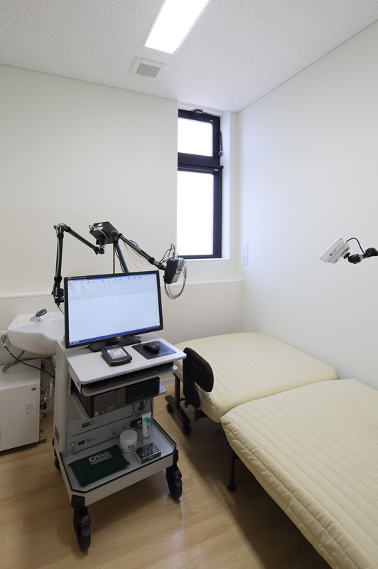 血球計算装置(CBC, CRP)、外注血液検査、血液ガス分析装置、尿検査、心電図、超音波診断装置、レントゲン診断装置、ネブライザー10台(貸し出し用5台)、デジタルビデオ脳波計、酸素飽和度測定装置、空気清浄器、加湿器、電子カルテ(Apple)、iPadによる問診システム、など